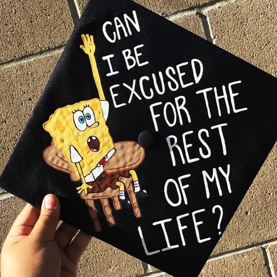 在毕业典礼的时候,除了邀请亲友、给自己穿上美美的衣服和鞋子,很多美国毕业生是要花很大力气去装饰自己的毕业帽的!一来是为了让自己不要被连连看消掉(让自己在众多毕业生里一眼就能被认出来),二来也是可以把自己毕业的心情通过帽子的装饰展示给大家!